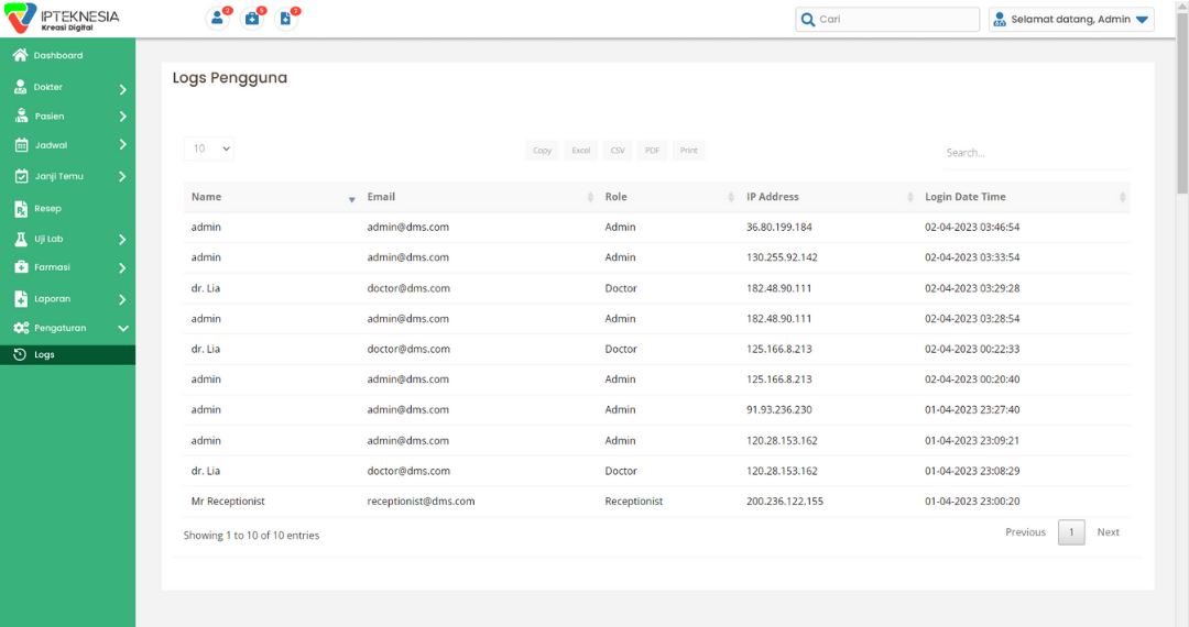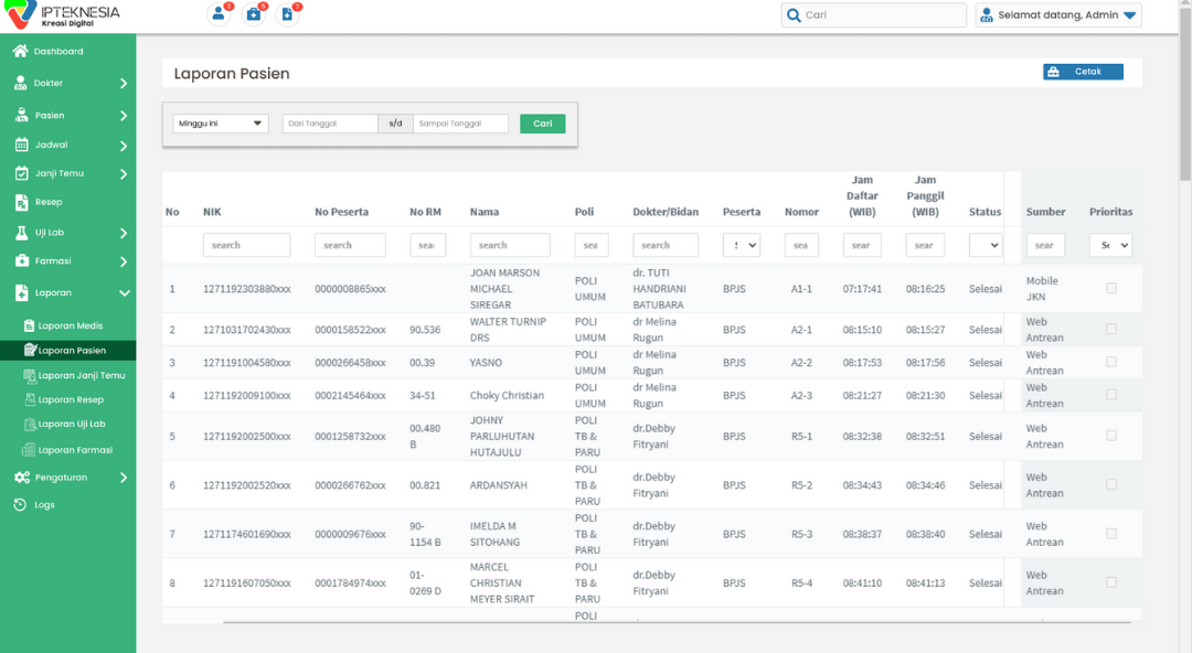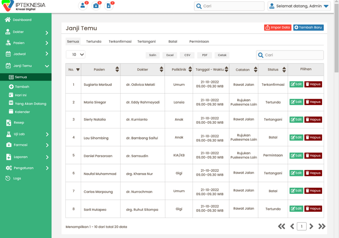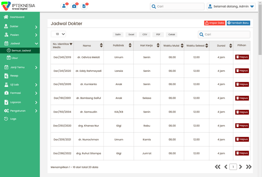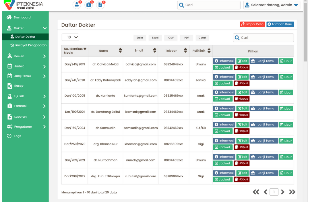 Daftar dokter, riwayat praktik, riwayat rujukan, input jadwal dokter
